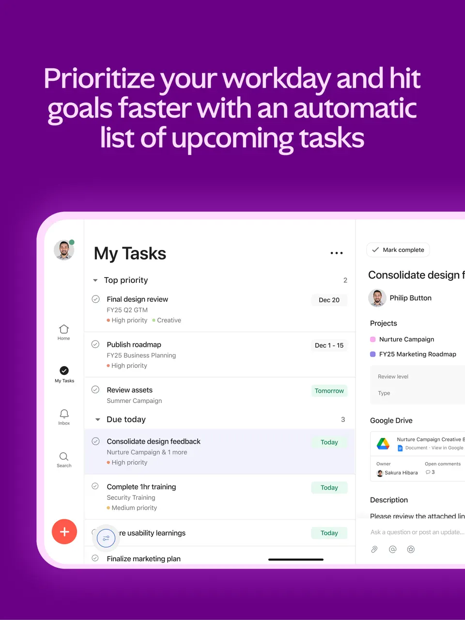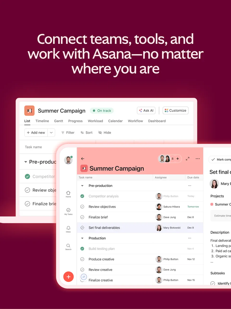 Asana is a popular project management software that also works well as a personal planner for structured daily and weekly organization. It offers lists, boards, timelines, subtasks, due dates, priorities, labels, recurring items, reminders, and calendar sync. The free plan is quite generous for individual use (unlimited tasks, projects, and basic views), while paid plans add advanced reporting, automations, and team features.