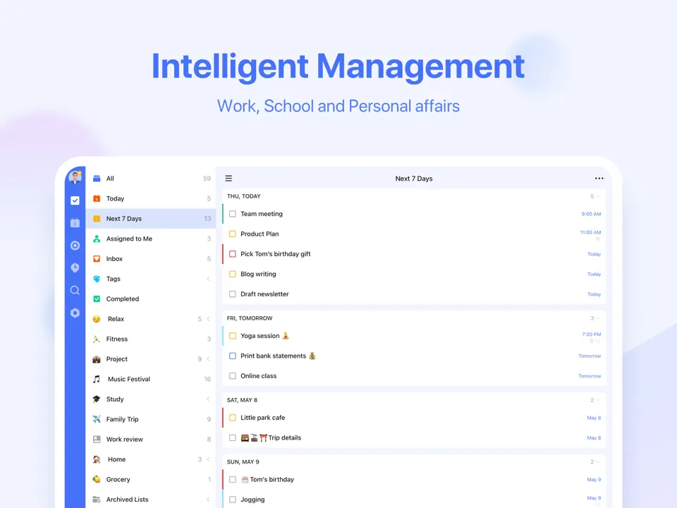 It runs smoothly in the browser with strong sync to mobile apps. Many people use it as an online organizer planner when they want clear visibility over tasks and deadlines without too much visual clutter. It’s especially useful for freelancers or anyone who needs a balance between simple lists and more organized workflows in their life.