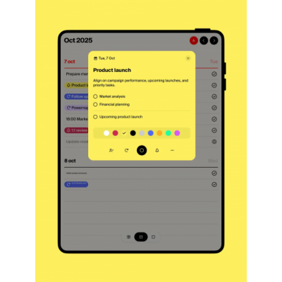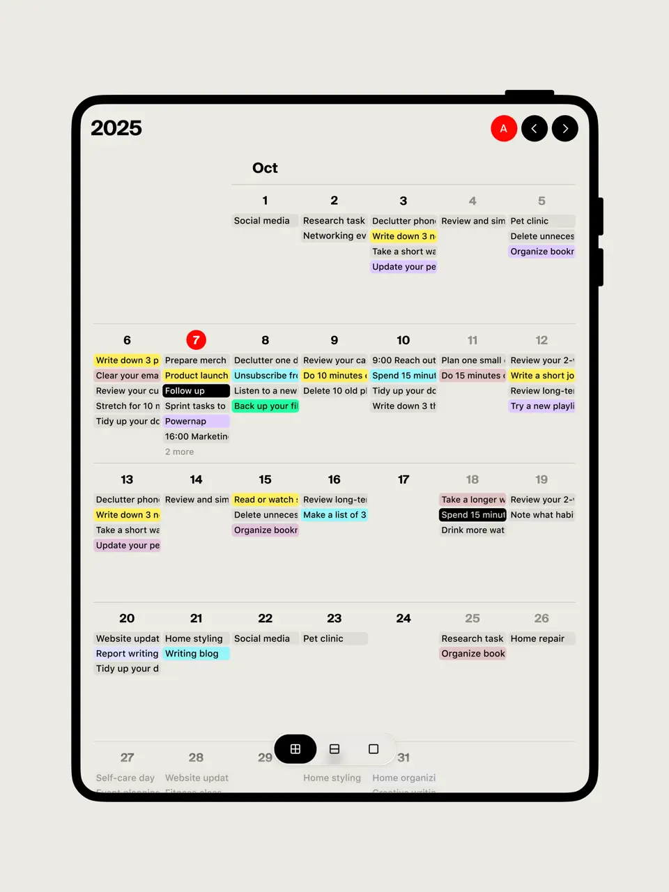 There is a system of pop-up notifications. Important things can be highlighted using color or stickers with emojis. There is an option for recurring tasks. If you are not always online, you can easily print a template of your created calendar and attach it to your paper monthly planner or bullet journal.