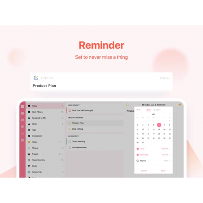 A calendar app that allows you to schedule tasks, lists, and reminders. Realized simple syncs with all your mobile devices, computers, laptops, and tablets so personal to-do lists will be available to you at any time.