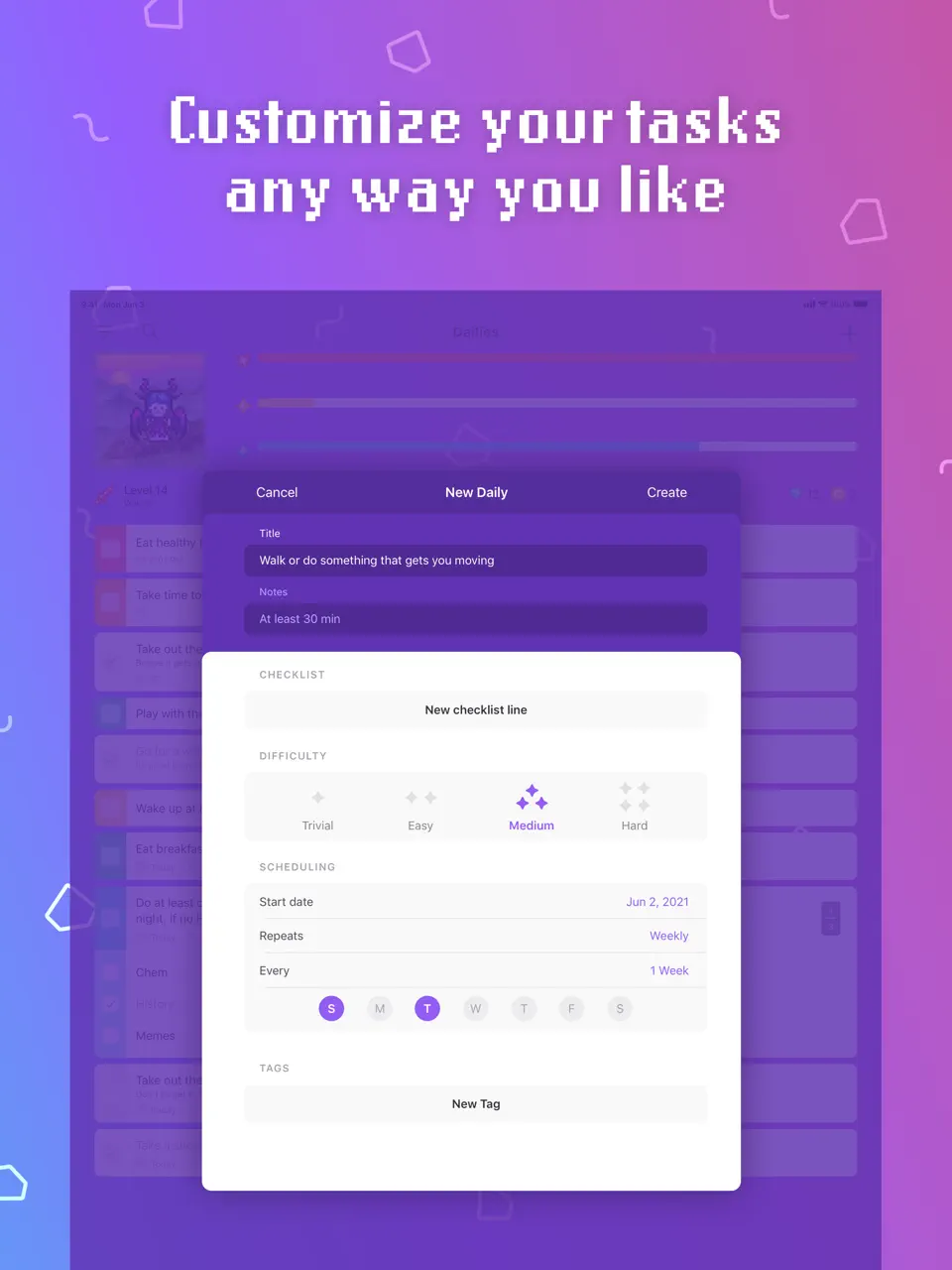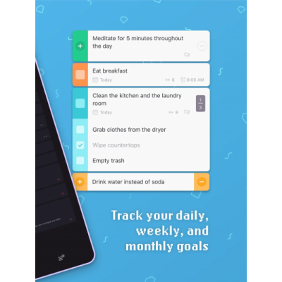 Taskmanager for those who like the concept of gamification. Improves productivity by transforming your life and daily tasks into a so-called game. There is a system of in-game rewards and punishments designed to motivate and organize the user. Start by setting your habits, creating a to-do list and goals, making your favorite avatar, and getting into the fun game.