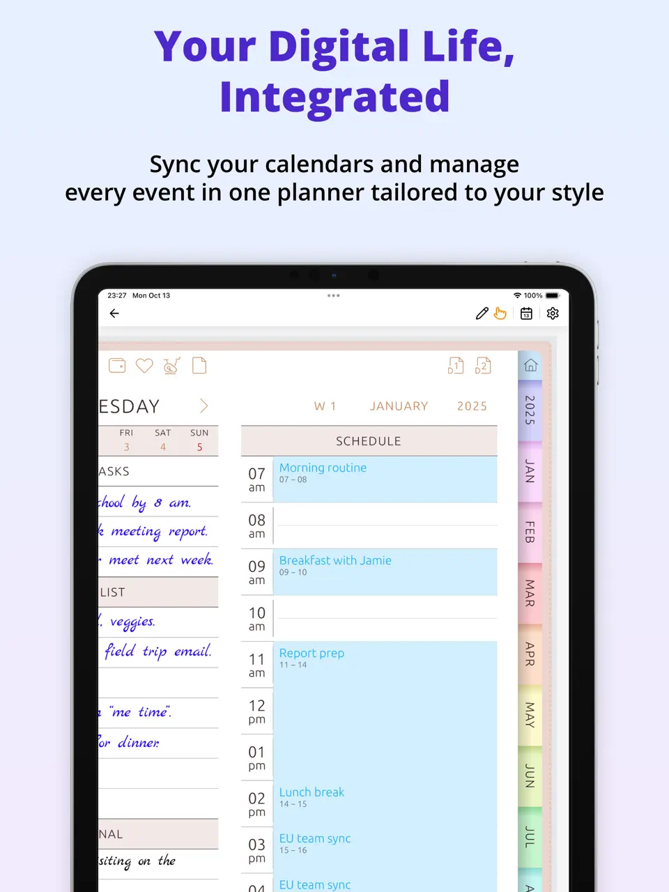 A structured digital planner designed for daily, weekly, monthly, and yearly planning. It combines scheduling, task tracking, notes, and goal planning in one system and works especially well with calendar synchronization for holistic personal organization.