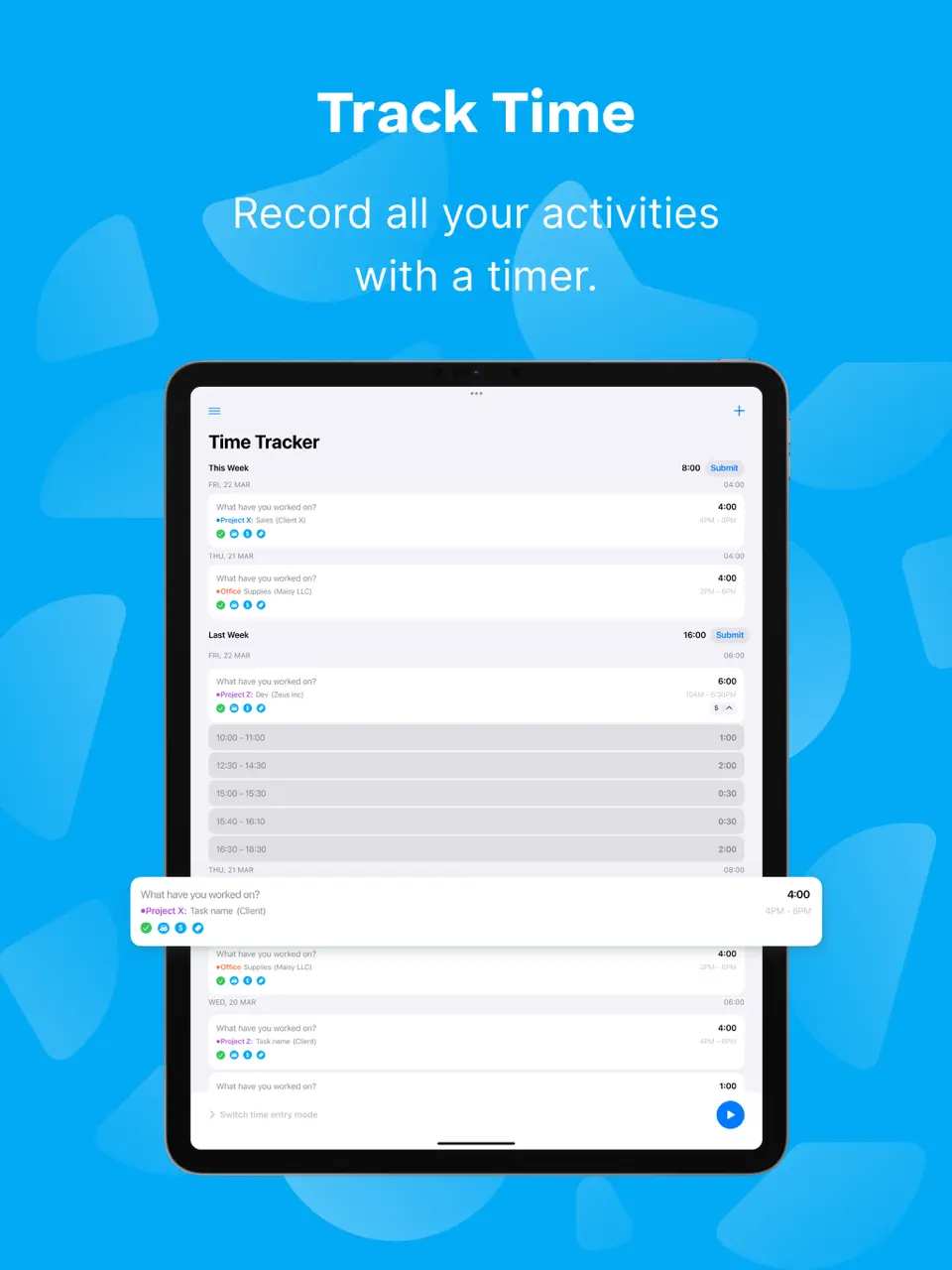 Clockify: a free productivity and time-tracking app that helps you organize your schedule and prioritize tasks. It also syncs with Apple Watch, allowing you to track your work and goals on the go.