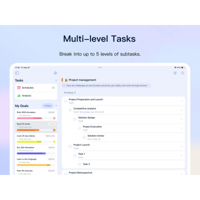 There is a built-in calendar. Each goal can tie to a specific date. Available a tab of reports with detailed information about the work done. Tagging is supported so you can better focus on priorities. The app stands out for its visual progress charts and reminders, which help users stay accountable. It’s ideal for personal goals like fitness, routines, or long-term self-improvement.