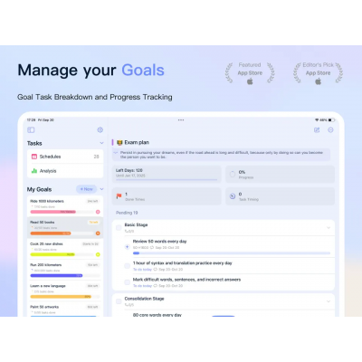 GoalsOnTrack: a multifunctional goal-setting app ideal for scheduling and tracking tasks. It can sync with Apple, Google, and Microsoft calendars, supports subtasks, and provides reminders to keep you on top of upcoming events. It also offers backup functionality and filtering to manage goals efficiently.