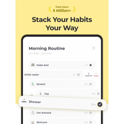 Routinery is a focused app designed to help users build and stick to daily routines through guided steps, timers, and progress tracking. It allows creating voice-prompted sequences (e.g., “wake up → brush teeth → meditate”), chaining habits, and viewing analytics to see consistency over time. The free version supports basic routines, while premium unlocks unlimited routines and advanced statistics.