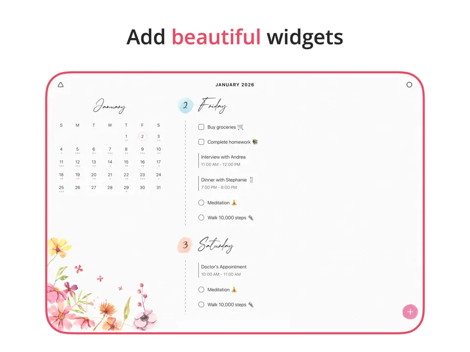 - Customizable widgets and reminders