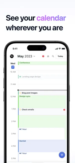 - Full calendar sync and time blocking