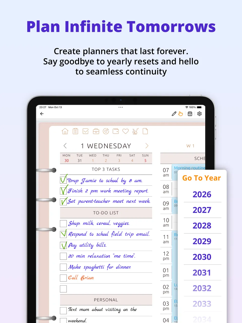 GoodNotes transforms digital handwriting into a powerful weekly planning tool through PDF templates and infinite notebooks. Users import or create beautiful weekly spreads and write naturally with Apple Pencil or other styluses. It's especially popular among students and creatives who prefer the feel of paper planning with digital convenience.