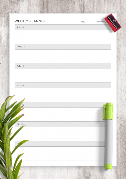 Available for different sizes of notebooks. Ready to make your weekly routine easier? Then set up your personal Two-Page Weekly Horizontal Planner, and download the PDF file.