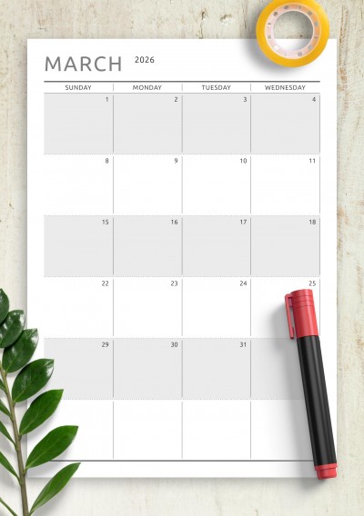 Dated Monthly Calendar - Original Style