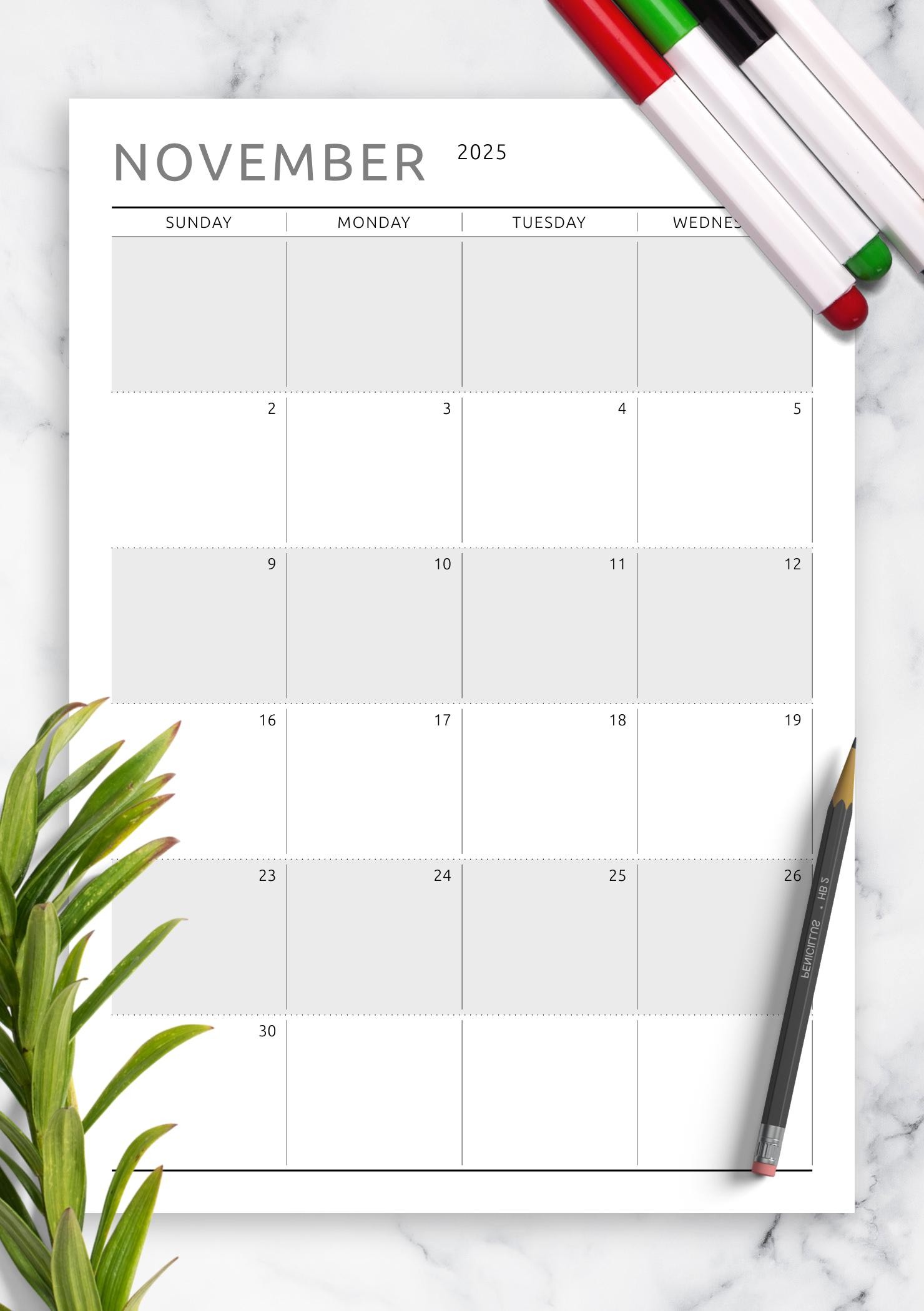A blank page at the beginning of the document will facilitate the double-sided printing making sure your planner spreads are placed correctly.