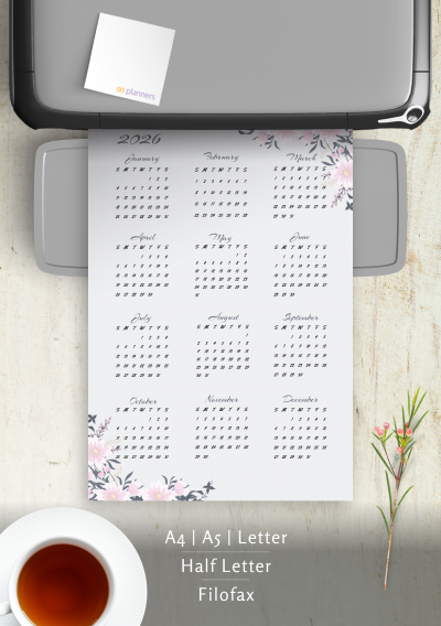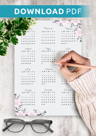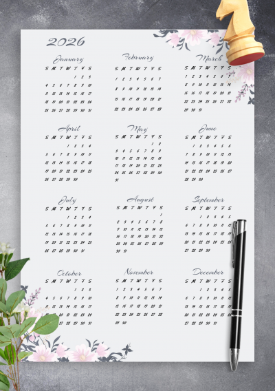 Elegant yearly calendar with beautiful design, nice readable font and classic layout. Customize the dates and save the calendar in PDF format. It's printable and compatible with all printers, so you can print it out at the office or home to add to your planner or use it separately.