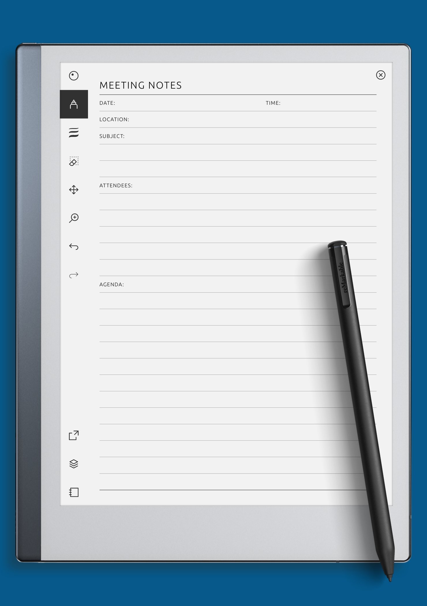 Below that, the page includes lined sections where you can outline the agenda, write talking points, and record decisions or follow-ups. The simple layout helps you stay focused, whether you’re in a formal meeting, a team check-in, or a one-on-one conversation.