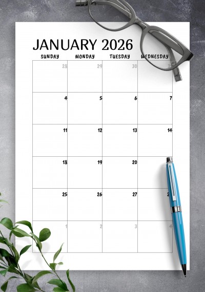 This printable minimalist calendar 2026 - 2027 helps you to plan new year.