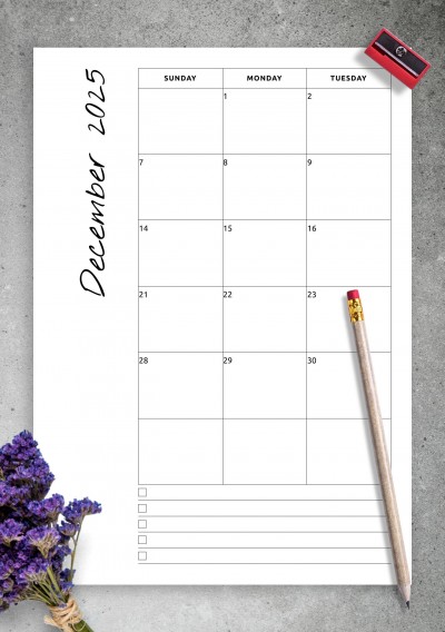 If you are looking for a free printable monthly calendar for 2025 - 2026 this is it! Two pages per month. Portrait landscape. This calendar template has just a blank calendar and notes sections on both pages. Also, you can choose paper size A4 or A5. Pay attention this template is with holidays!