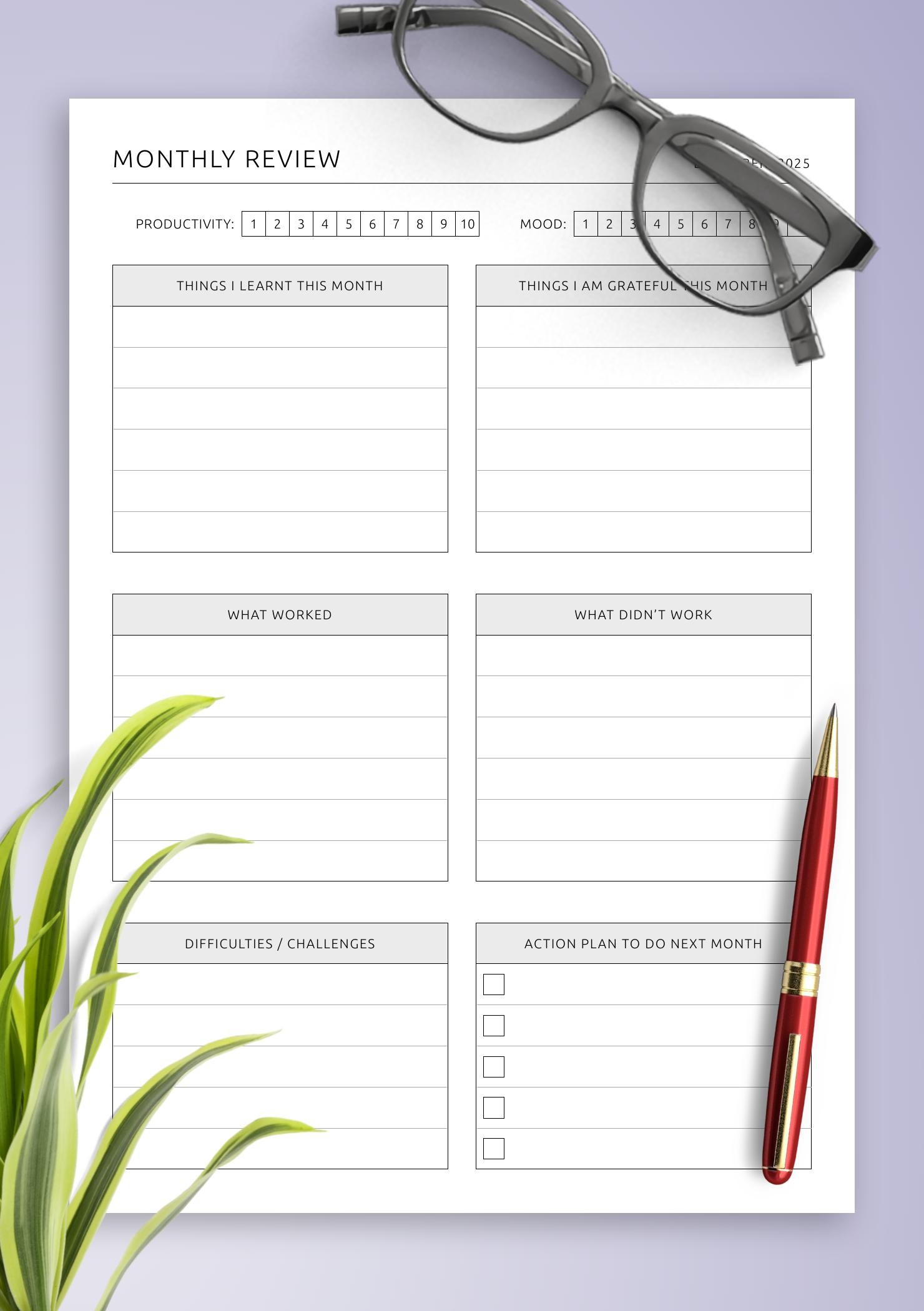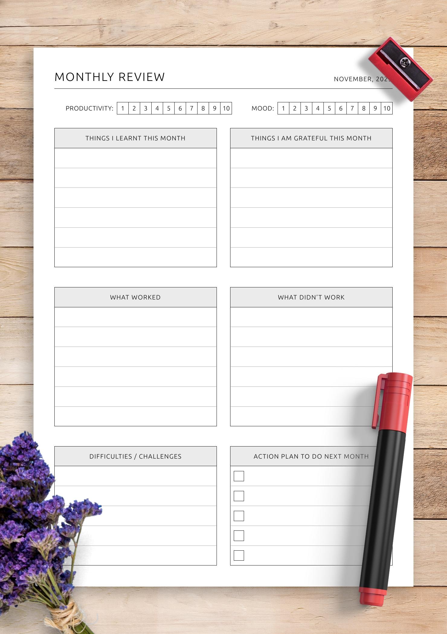 Monthly Review Template is a great way to visually see your achievements and adjust your strategy to reach your goals for the coming month. Don't procrastinate - get your personal layout and make every month more successful and may your accomplishments grow up.