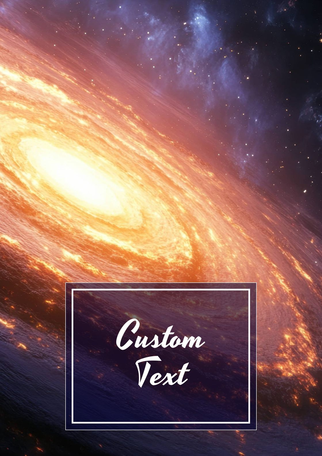 Channel unstoppable momentum with the Cosmic Vortex Planner Cover. A blazing celestial spiral radiates energy and depth, creating a bold and dramatic cosmic statement.