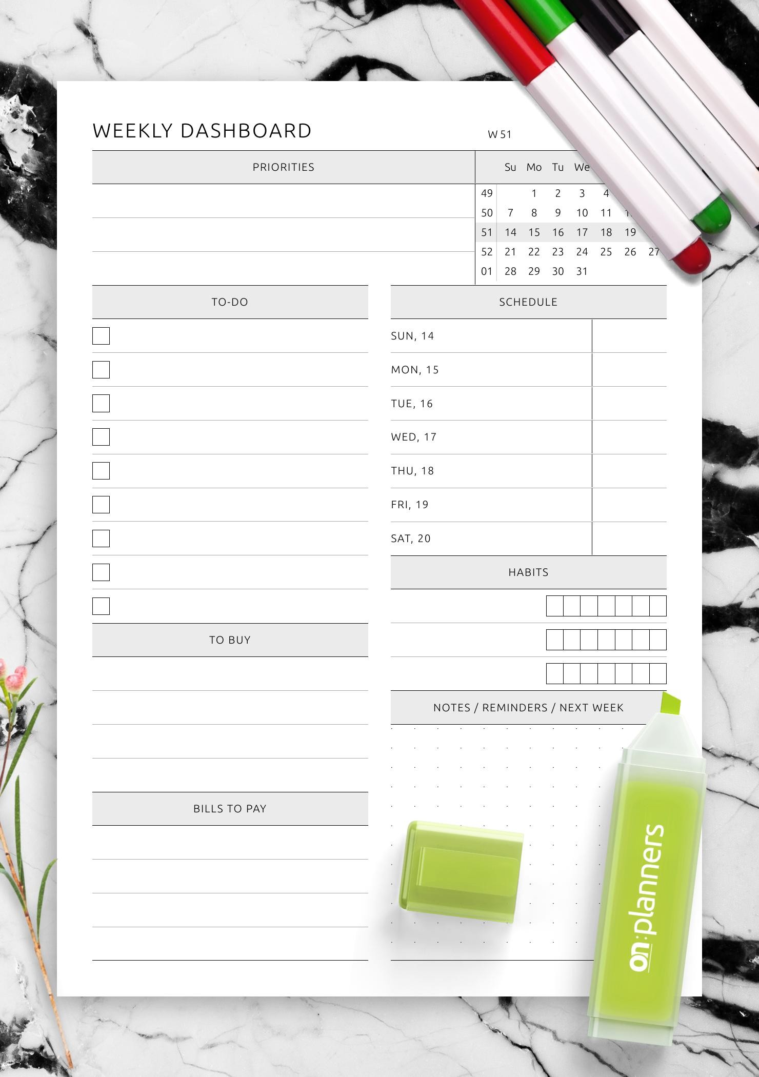 Here is a helpful thing that allows you to prioritize, create a list of what you want to do, organize a schedule for the week, and so on. Select the layout type (printable or digital) and choose the rest of the options. Please note that you can customize the template to your specific preferences in the online editor. Download the PDF and join many happy users.