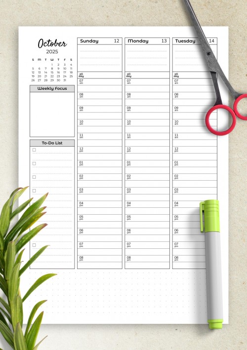 This weekly template is more extent than other ones in this category. It contains many useful sections which help to increase your productivity.