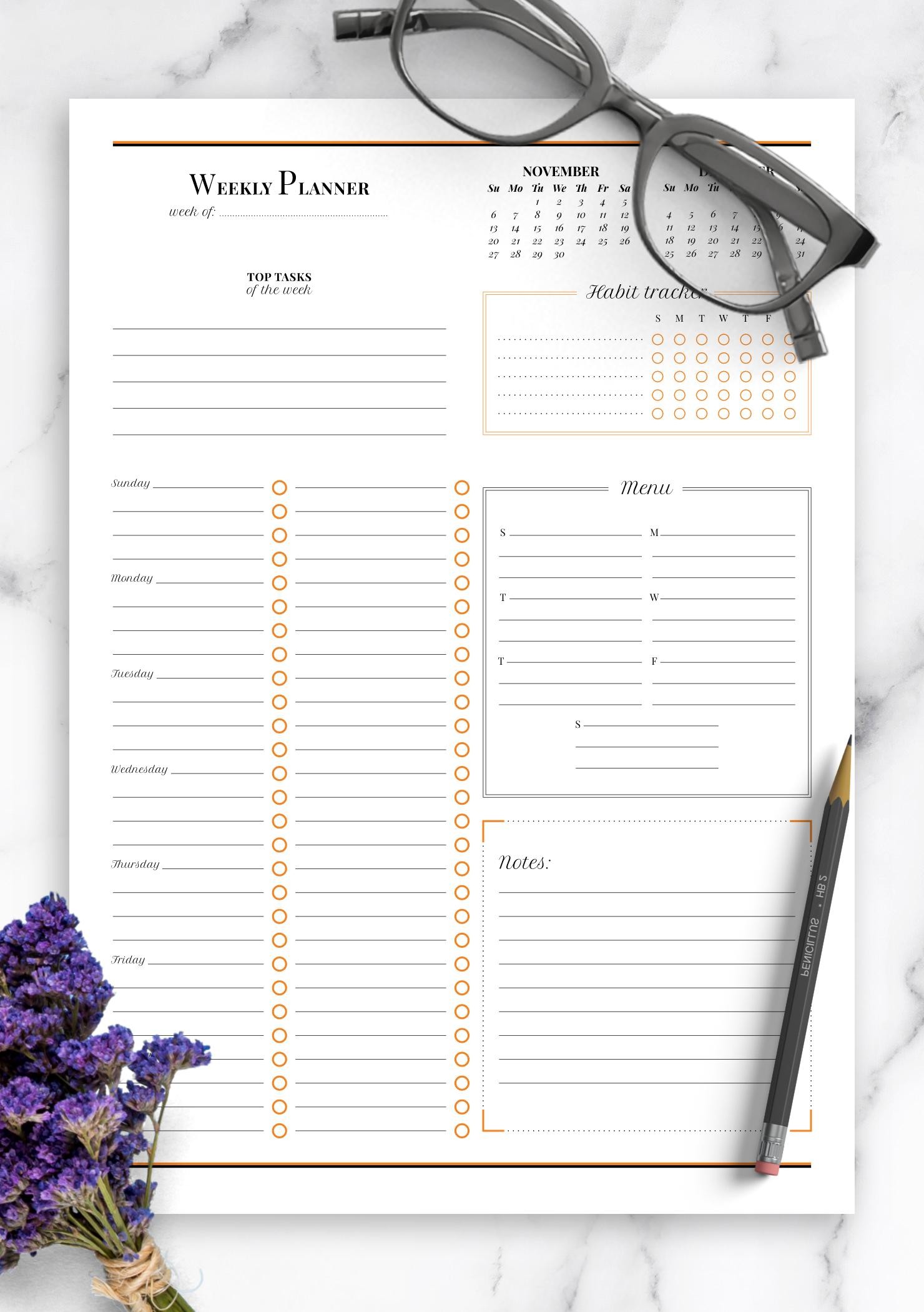 A blank page at the beginning of the document will facilitate the double-sided printing making sure your planner spreads are placed correctly.