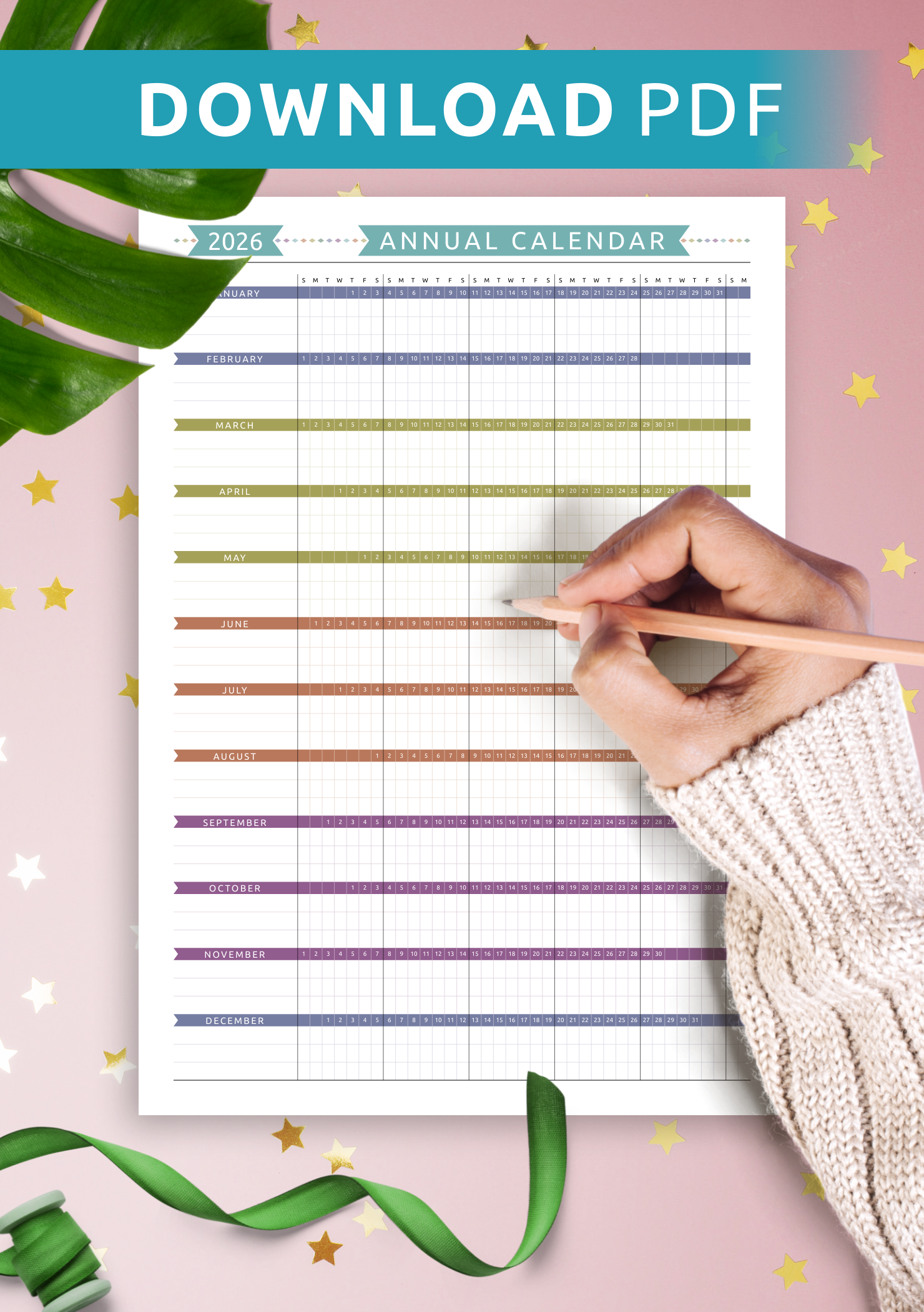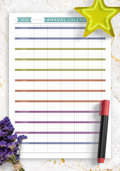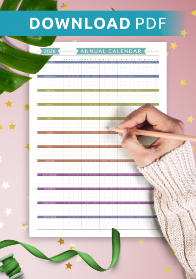 The Annual Calendar Template will be useful regardless of what you do and how you spend your time. You will be able to schedule an action plan for each month of the year, ranging from simple daily tasks to more serious issues that require your special attention.
