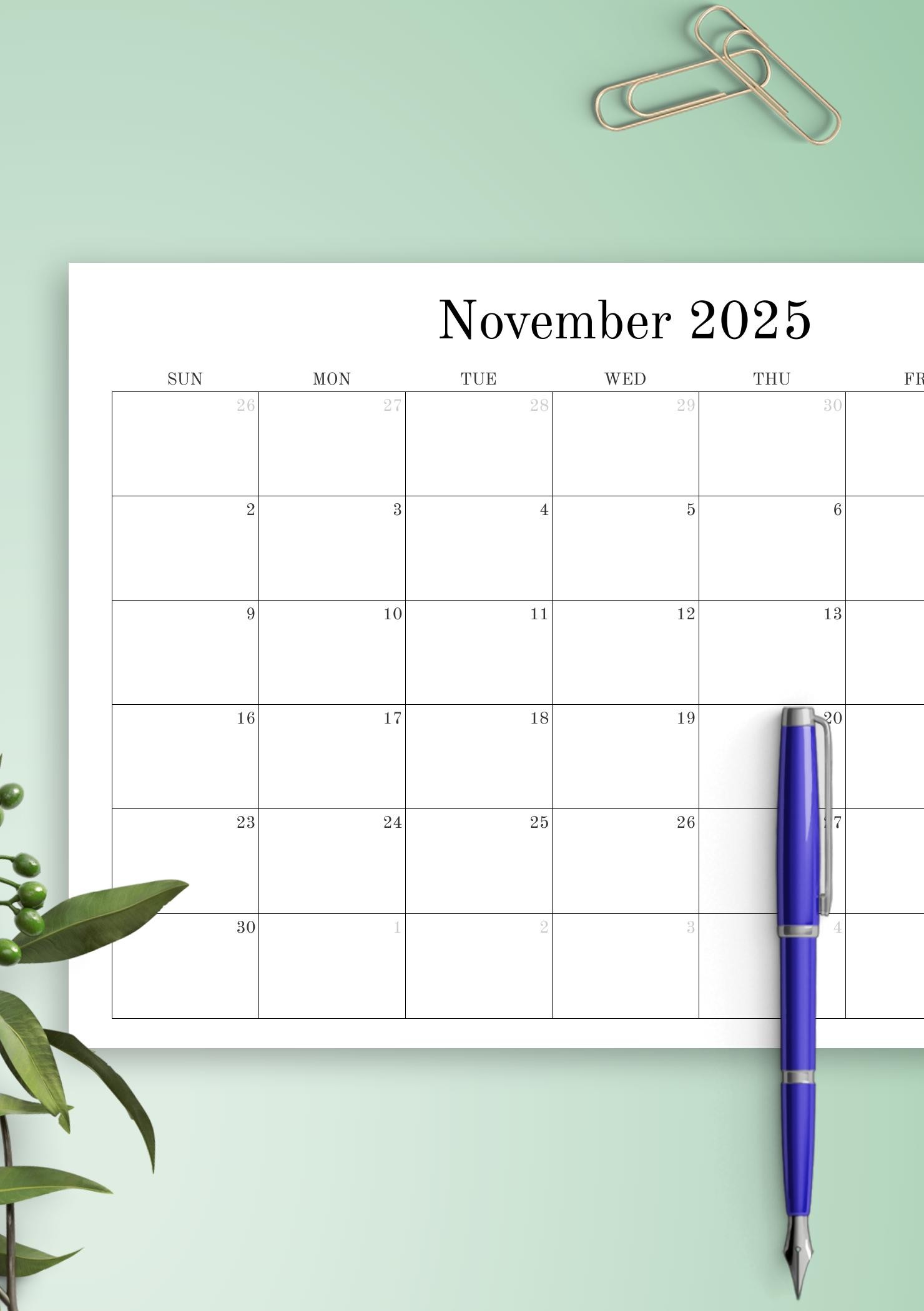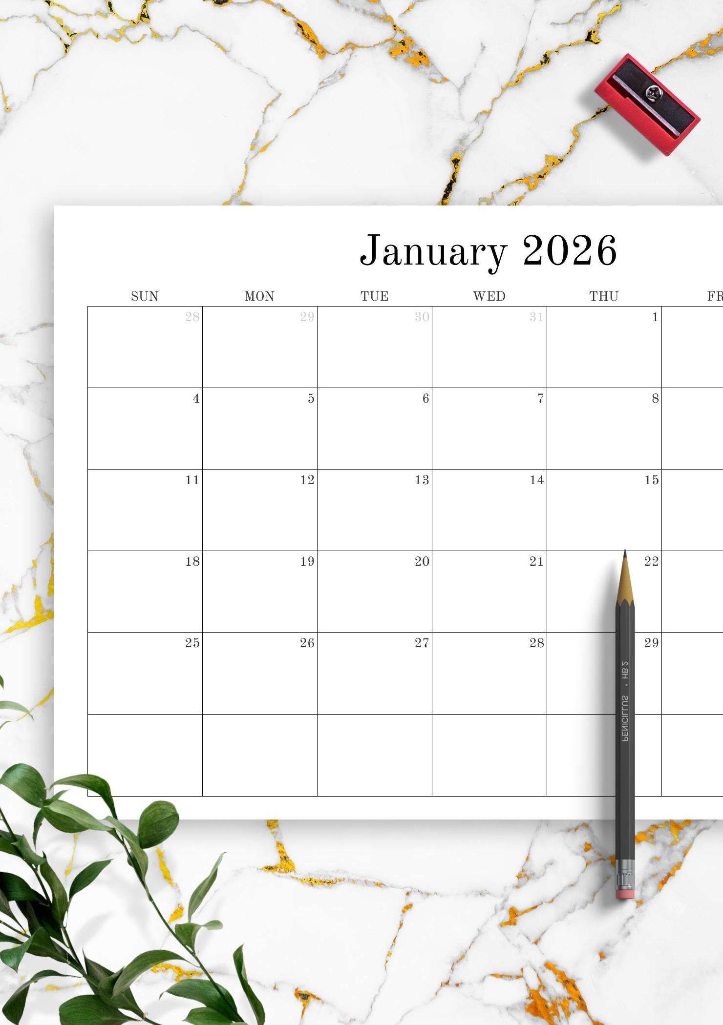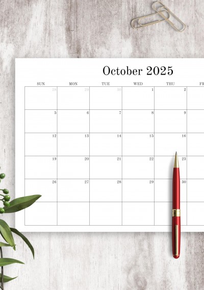 Blank monthly calendar template designed to help you achieve more and become more productive easily.
