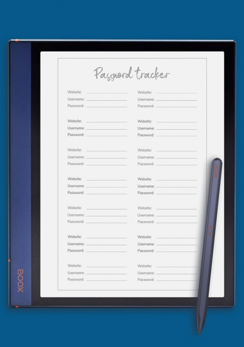 Password log tracker with the very convenient layout that allows you to keep your log compact and structured easily. Download printable password template PDF and start using it today.