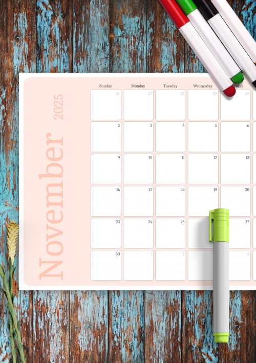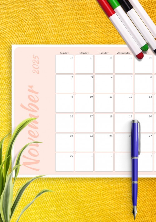 Browse the selection of the best November 2025 calendar templates and choose your perfect monthly calendar that is both printable and iPad-friendly for analog and digital usage. Customize the dates with a click of a button if you need more than one month and download PDF to start planning with a useful productivity tool today. Discover horizontal calendars with album orientation as well as portrait format that are available in various sizes and designs. Get monthly calendar for the eleventh month and finish the autumn strong.