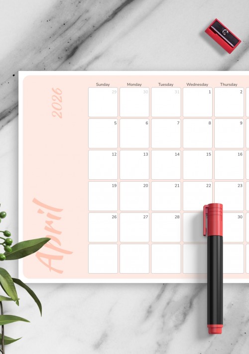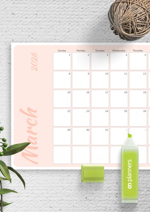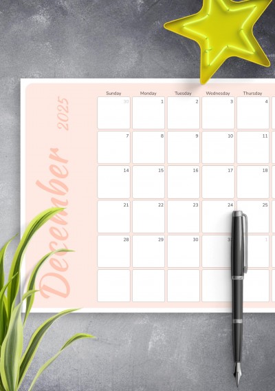 Stylish monthy calendar template designed to help you manage your tasks and plan things out easily. Choose the date range and page size to download printable and iPad-friendly PDF file with your calendar inside.