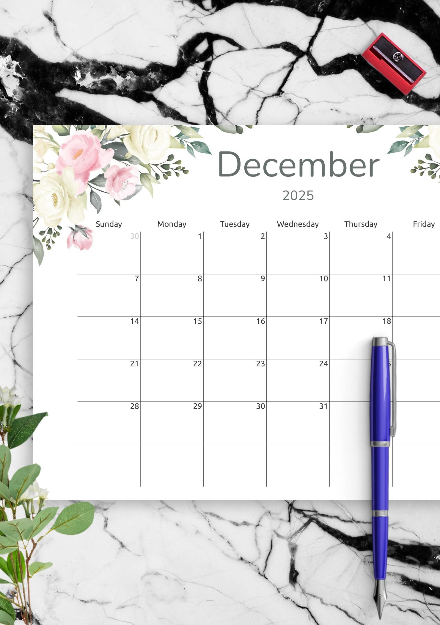 Floral Monthly Calendar