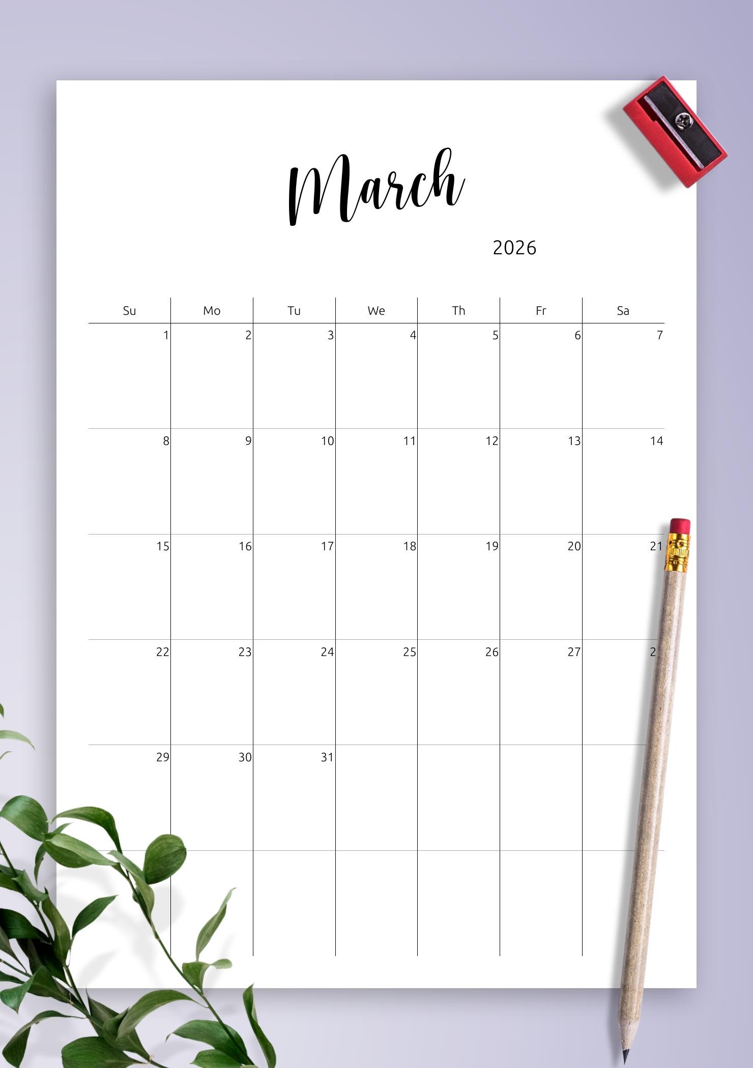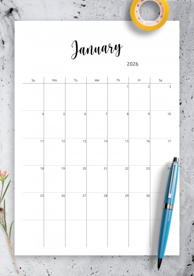 Minimalist Monthly Calendar Template