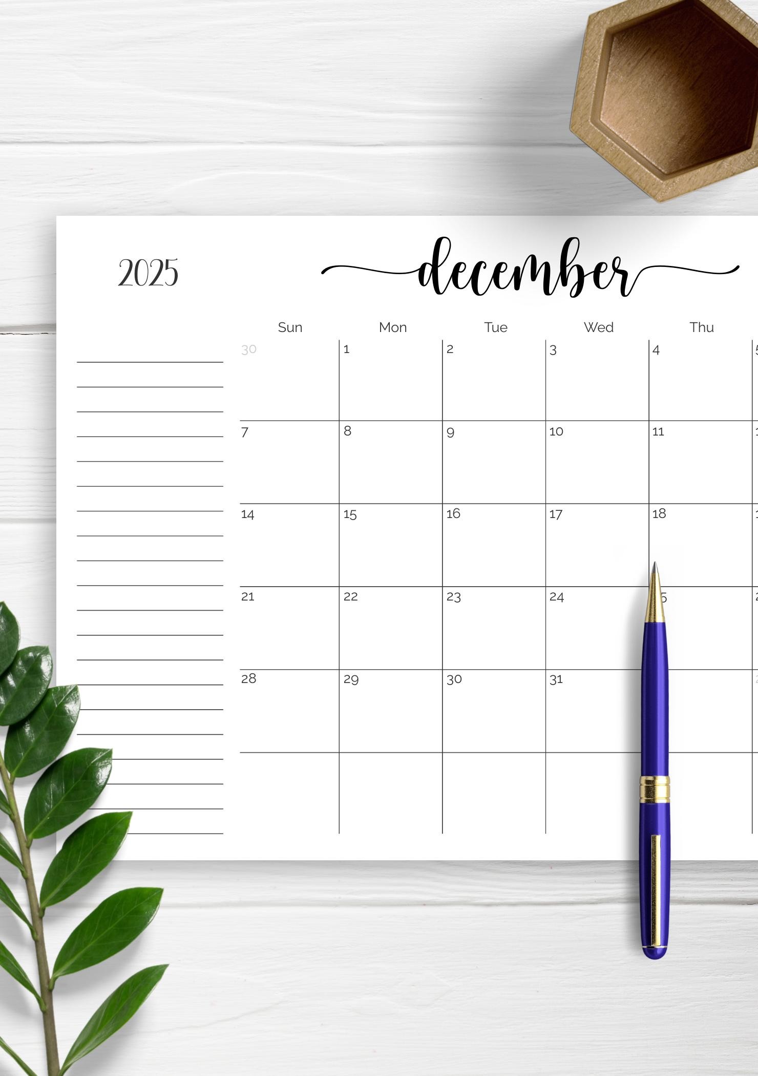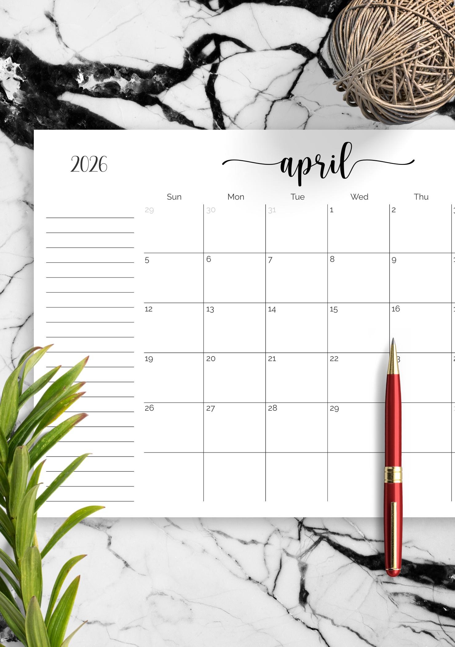 Plan your tasks and appointments for a month and take notes easily with a spacious monthly grid and a section for note-taking. Get this template now to start using monthly calendar with your binder or digital planner.