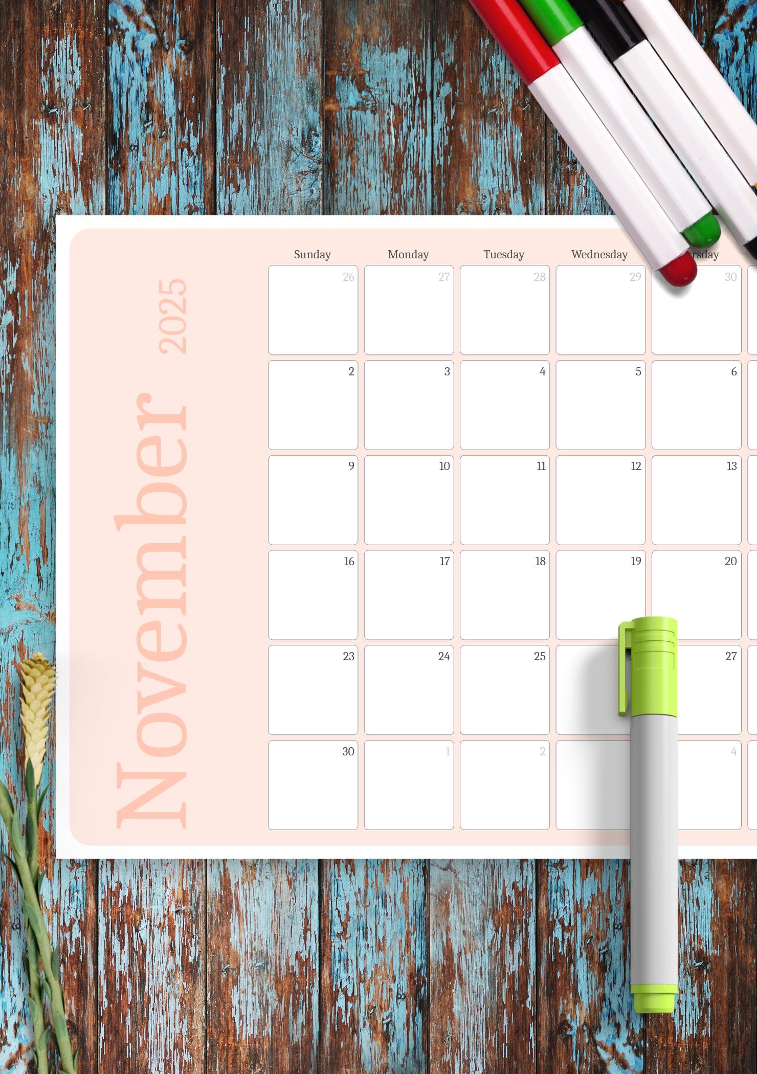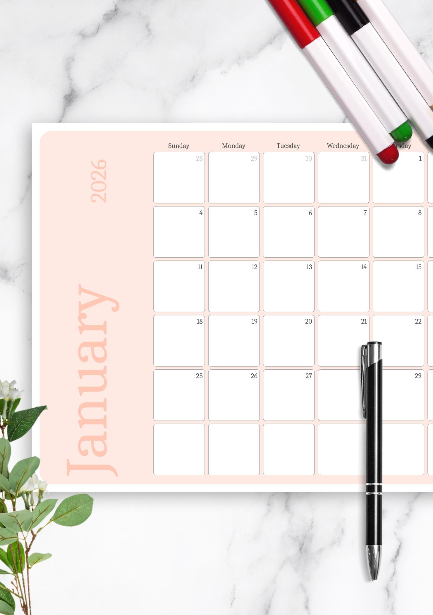 Plan your tasks, appointments and projects with the simple pink color-themed monthly calendar template. Download printable and iPad-friendly template in PDF format to start using it today.