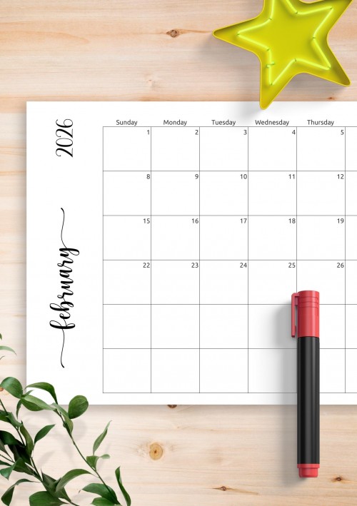 Simple Monthly Calendar Horizontal