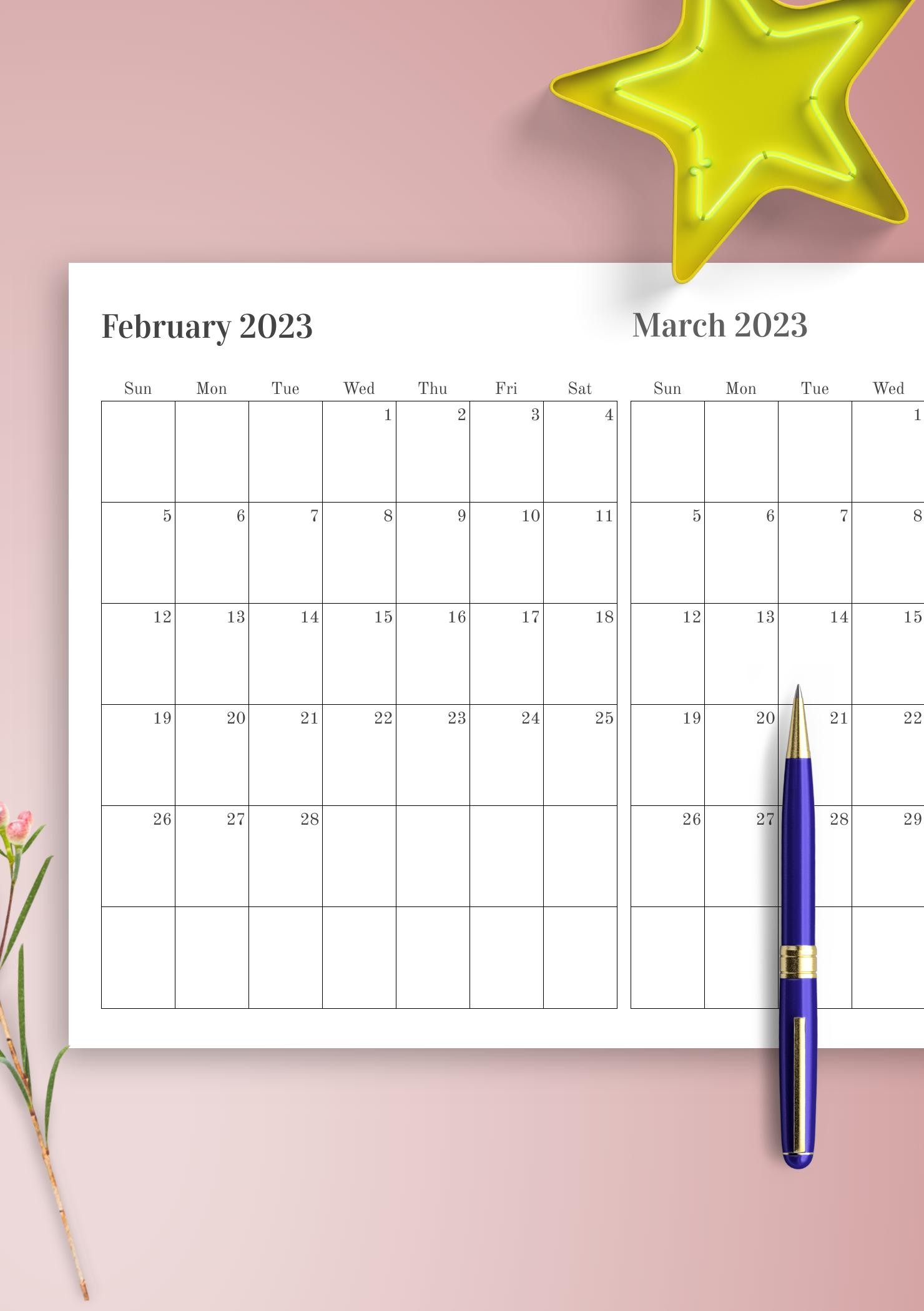 Two Months on One Page Calendar