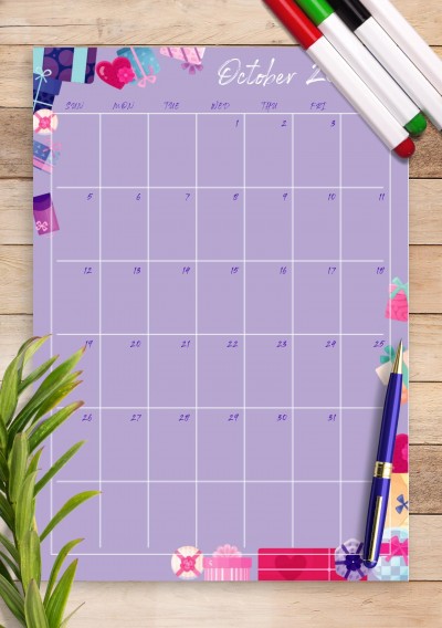 Violet Monthly Birthday Calendar