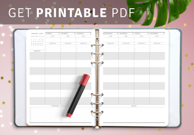 Improve your classroom efficiency and teaching material quality by setting your goals and priorities for the week ahead. You will be able to schedule specific tasks for specific days in advance, comfortably using the printed form with the drawn-up plan.