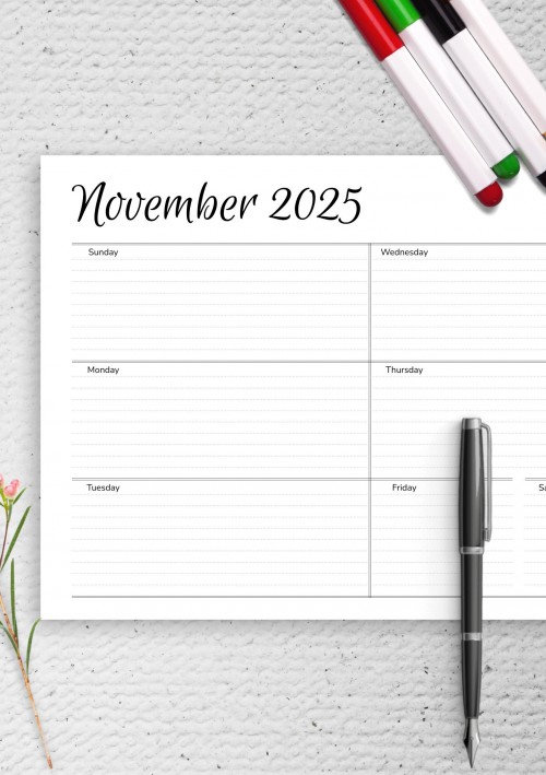 Download perfectly-designed weekly planner template that features an album orientation. This layout will allow you to fit in more plans and notes. Get this template in PDF format and use it printed or digital. It will help you become more efficient and organised across all areas of your life.